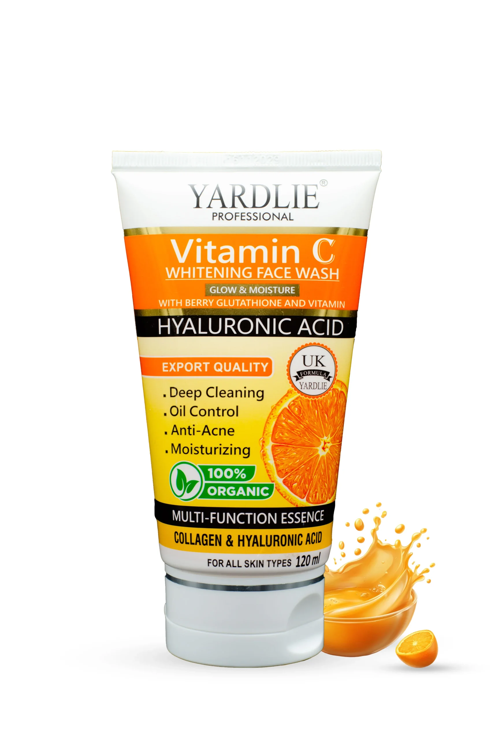Yardlie Professional Vitamin C Face Wash 120mlFace Wash | Vitamin C | Hyaluronic Acid | Glow and Moisture | Yardlie | 120ML